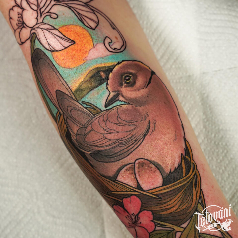 Tetování zvíře, pták na předloktí