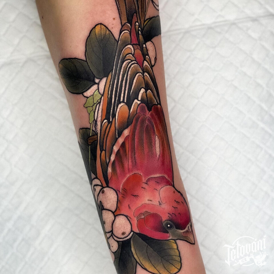 Tetování zvíře, pták na předloktí