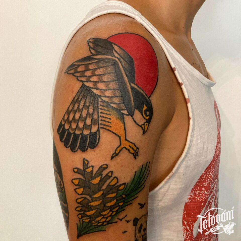 Tetování zvíře, pták na rameni