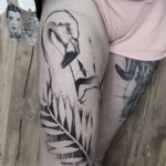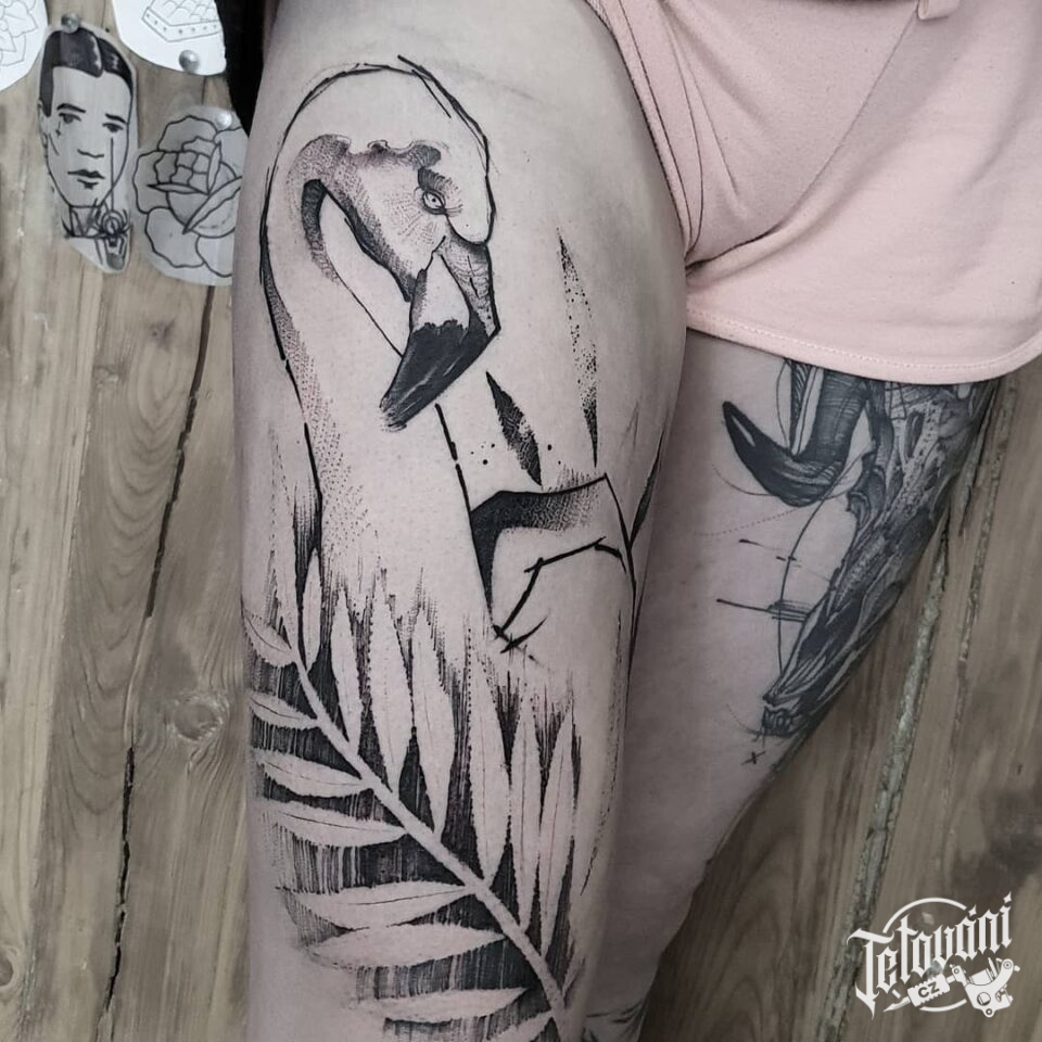 Tetování zvíře, pták, plameňák na stehně