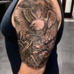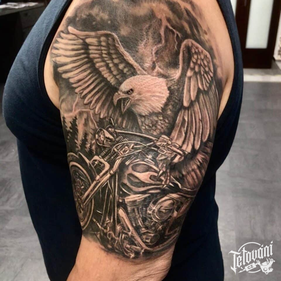 Tetování zvíře, pták, orel na motorce na rameni