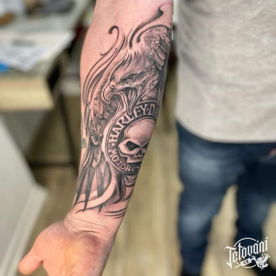 Tetování zvíře, pták, orel na předloktí