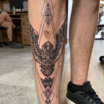 Tetování zvíře, pták, orel, ornamenty na holeni