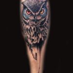 Tetování zvíře, pták, sova na lýtku