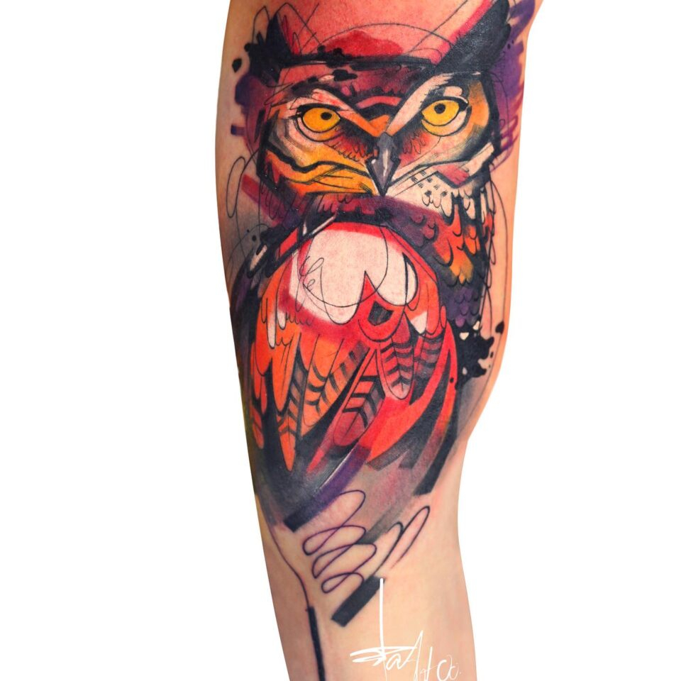 Tetování zvíře, pták, sova na paži