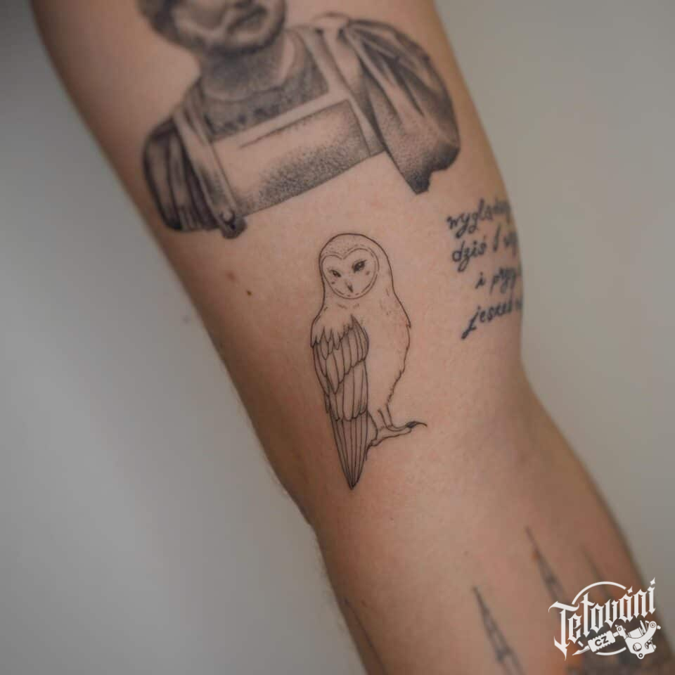 Tetování zvíře, pták, sova na paži