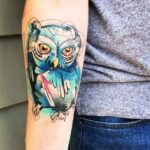 Tetování zvíře, pták, sova na předloktí