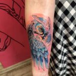 Tetování zvíře, pták, sova na předloktí