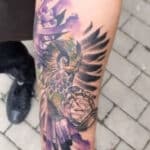 Tetování zvíře, pták, sova na předloktí