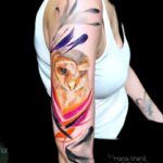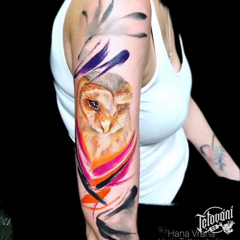 Tetování zvíře, pták, sova na rameni