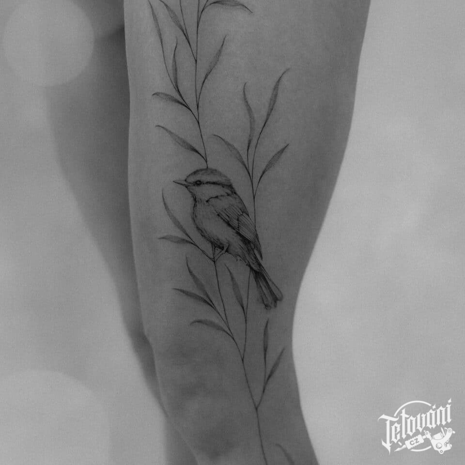 Tetování zvíře, pták, větvičky na noze