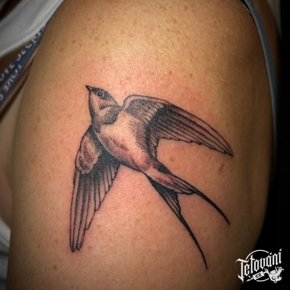 Tetování zvíře, pták, vlaštovka na boku stehna
