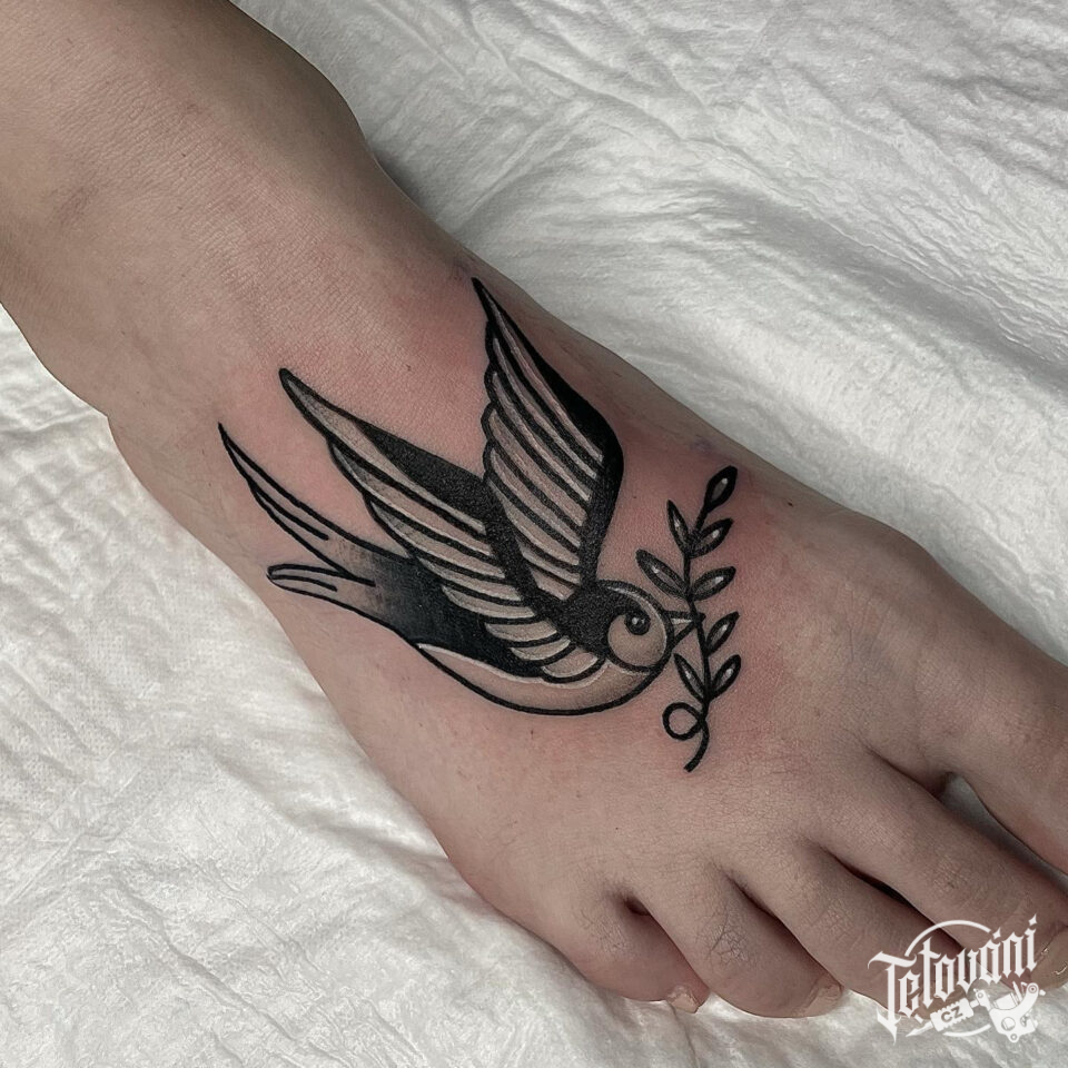 Tetování zvíře, pták, vlaštovka na nártu