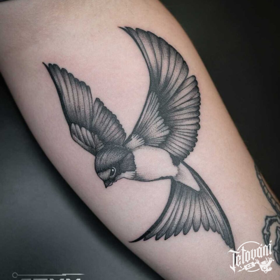 Tetování zvíře, pták, vlaštovka na předloktí
