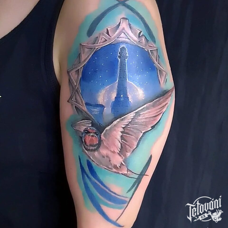 Tetování zvíře, pták, vlaštovka na rameni