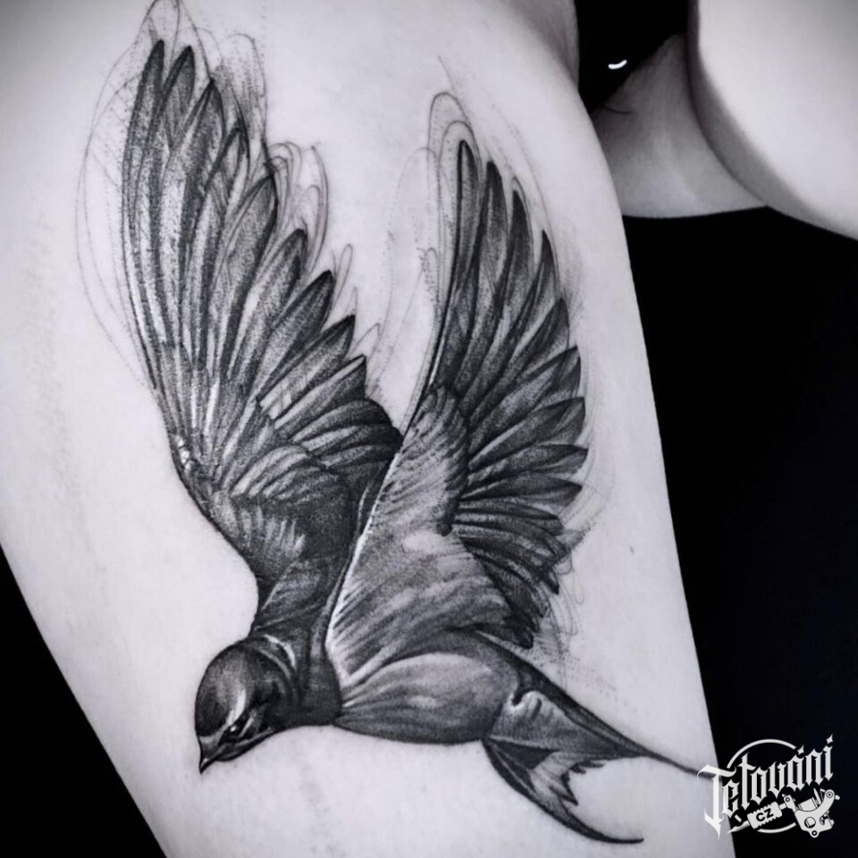 Tetování zvíře, pták, vlaštovka na stehně