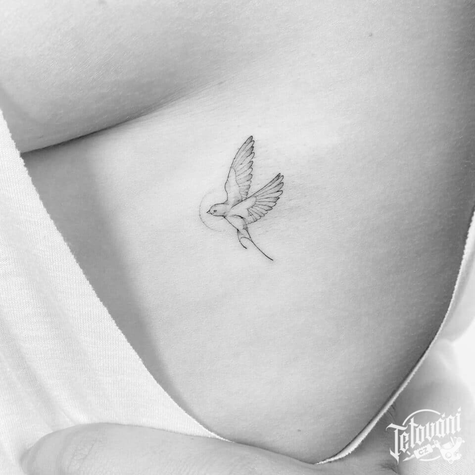 Tetování zvíře, pták, vlaštovka na žebrech