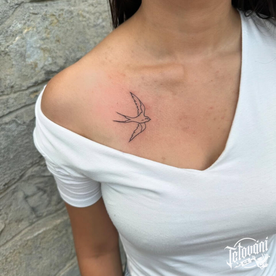 Tetování zvíře, pták, vlaštovka pod klíční kostí