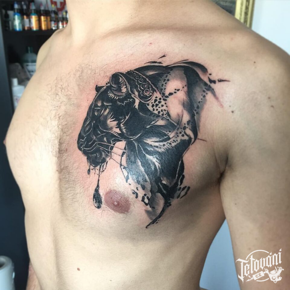 Tetování zvíře, puma na prsa
