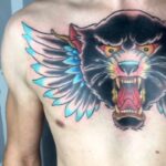 Tetování zvíře puma s křídly na hrudník