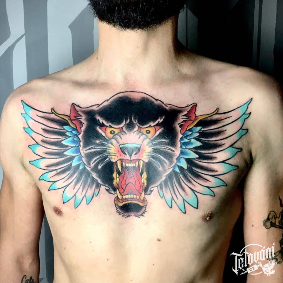 Tetování zvíře puma s křídly na hrudník