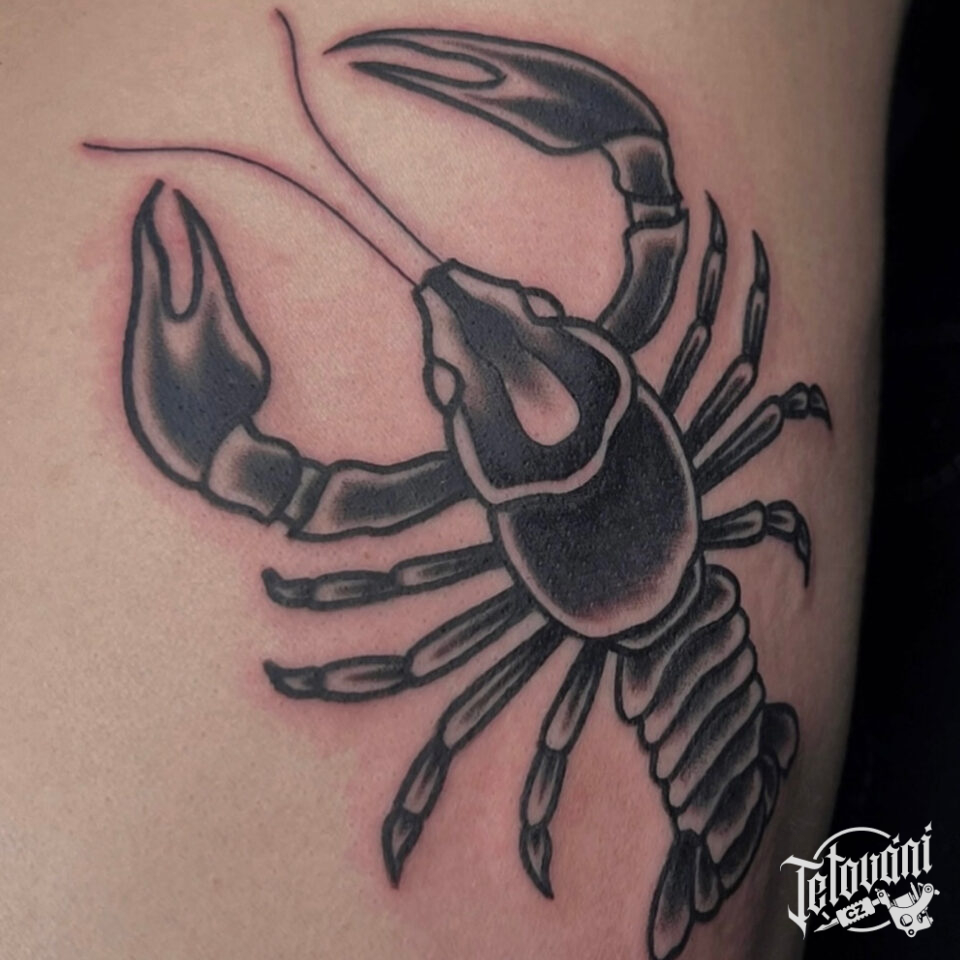 Tetování zvíře, rak znamení zvěrokruhu na lýtku