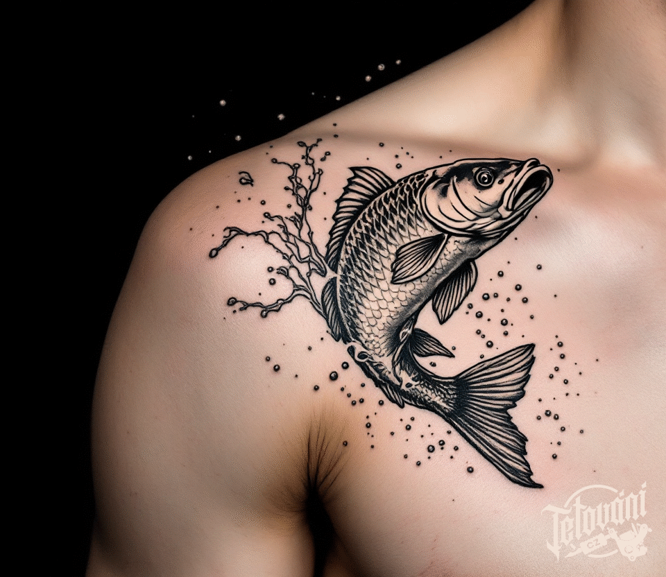 Tetování zvíře, ryba kapr na klíční kosti