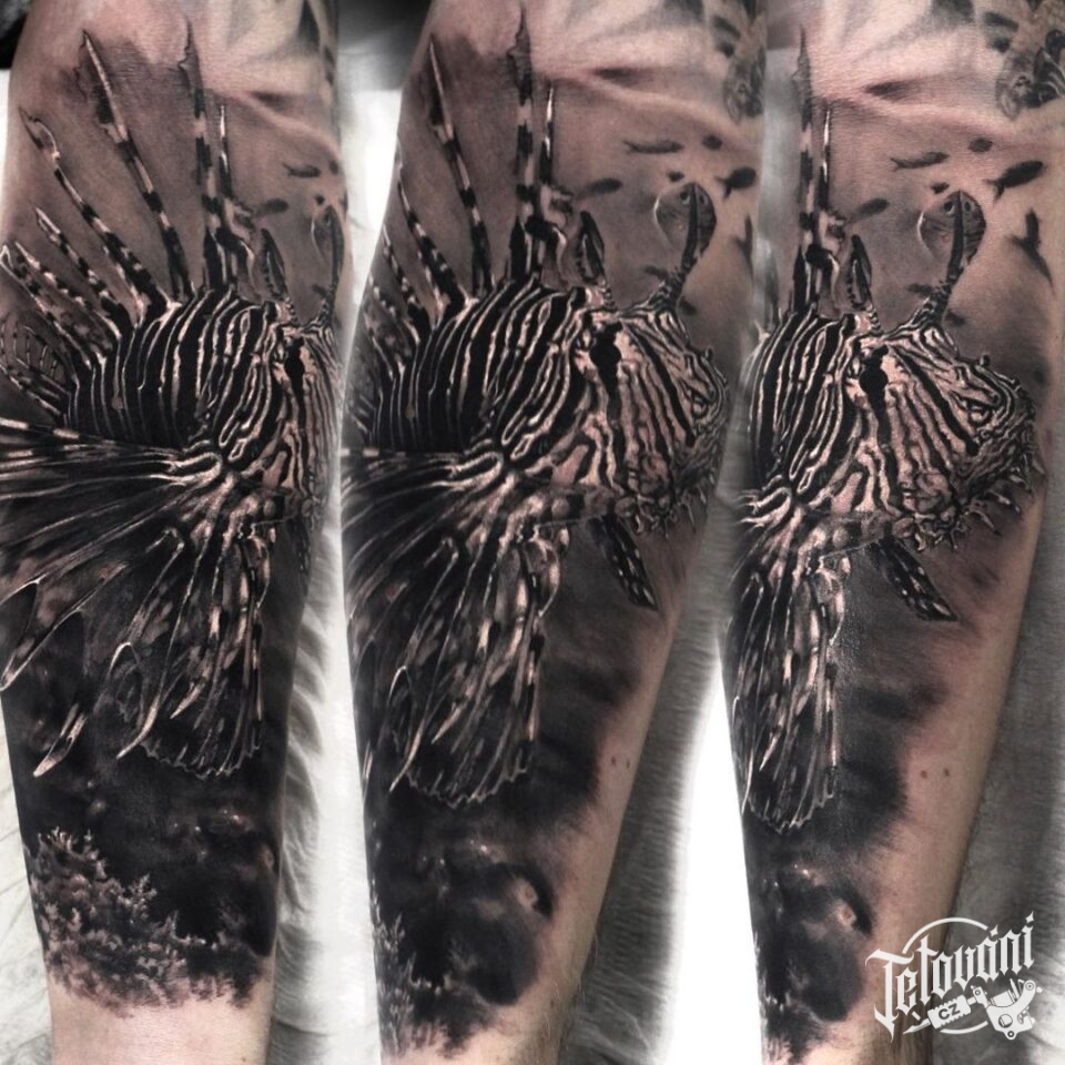 Tetování zvíře, ryba, moře na předloktí
