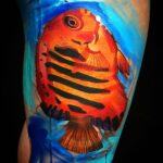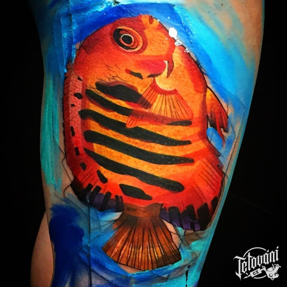 Tetování zvíře, ryba na boku stehna