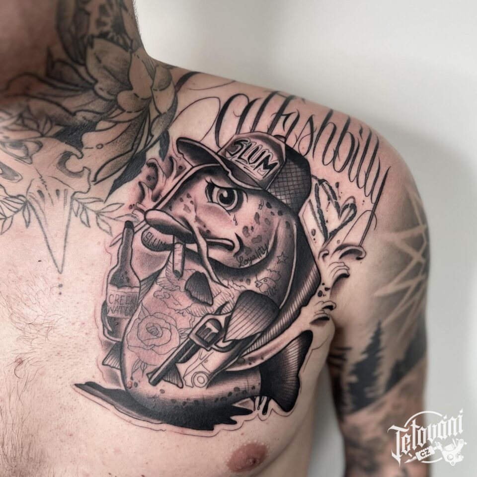 Tetování zvíře, ryba na hrudi