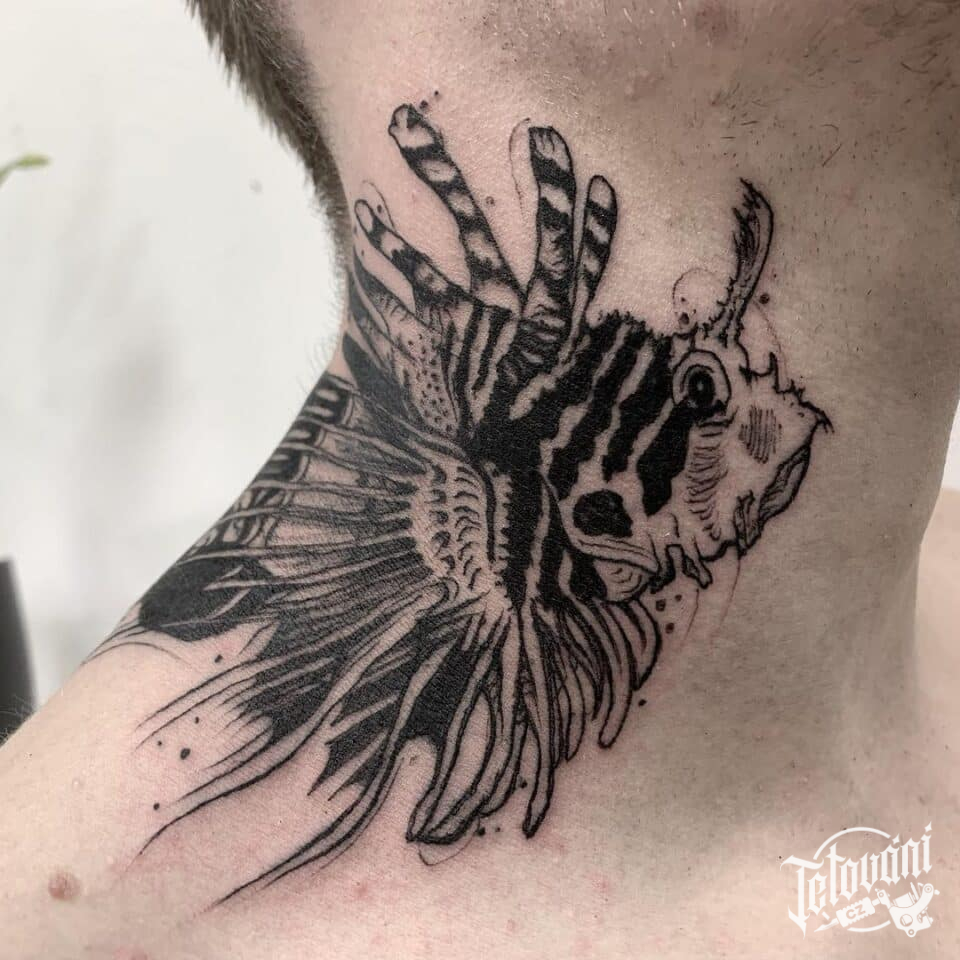 Tetování zvíře ryba na krk