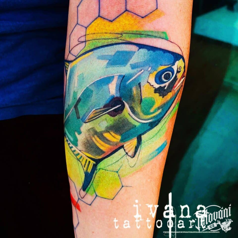 Tetování zvíře, ryba na předloktí