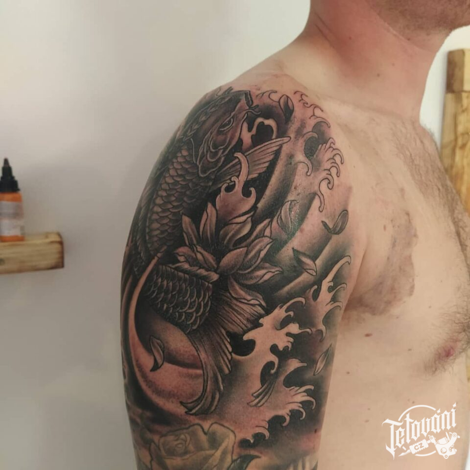 Tetování zvíře, ryba na rameni