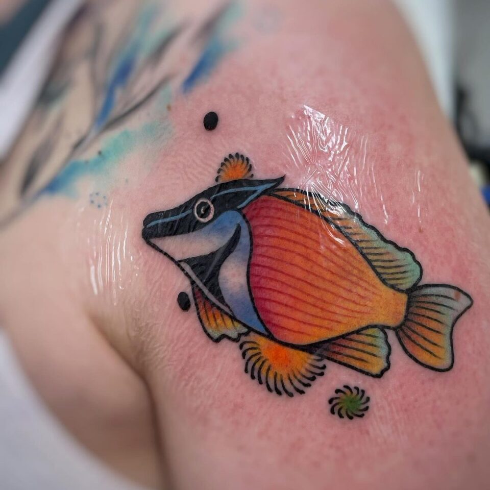 Tetování zvíře ryba na rameni