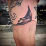 Tetování zvíře, ryba, rejnok na boku stehna