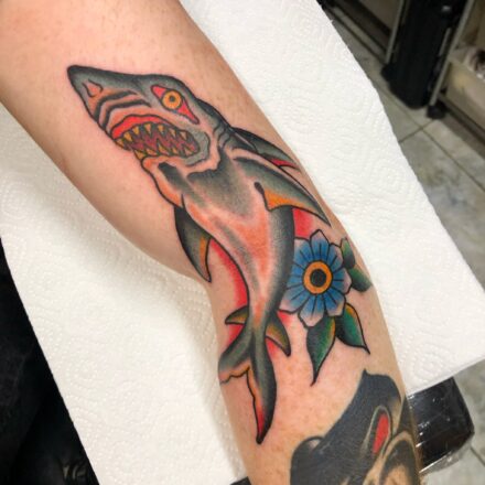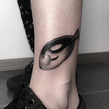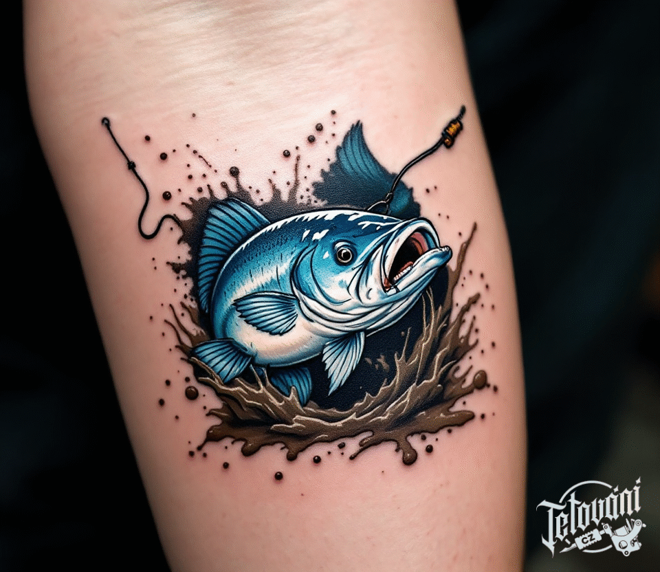 Tetování zvíře, ryba, sumec s rybářským háčkem na předloktí