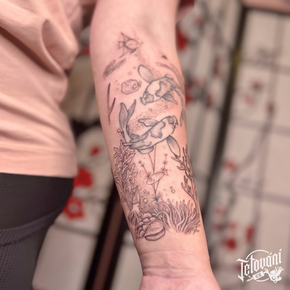 Tetování zvíře ryby, moře, mořský svět na předloktí