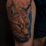 Tetování zvíře rys na stehno