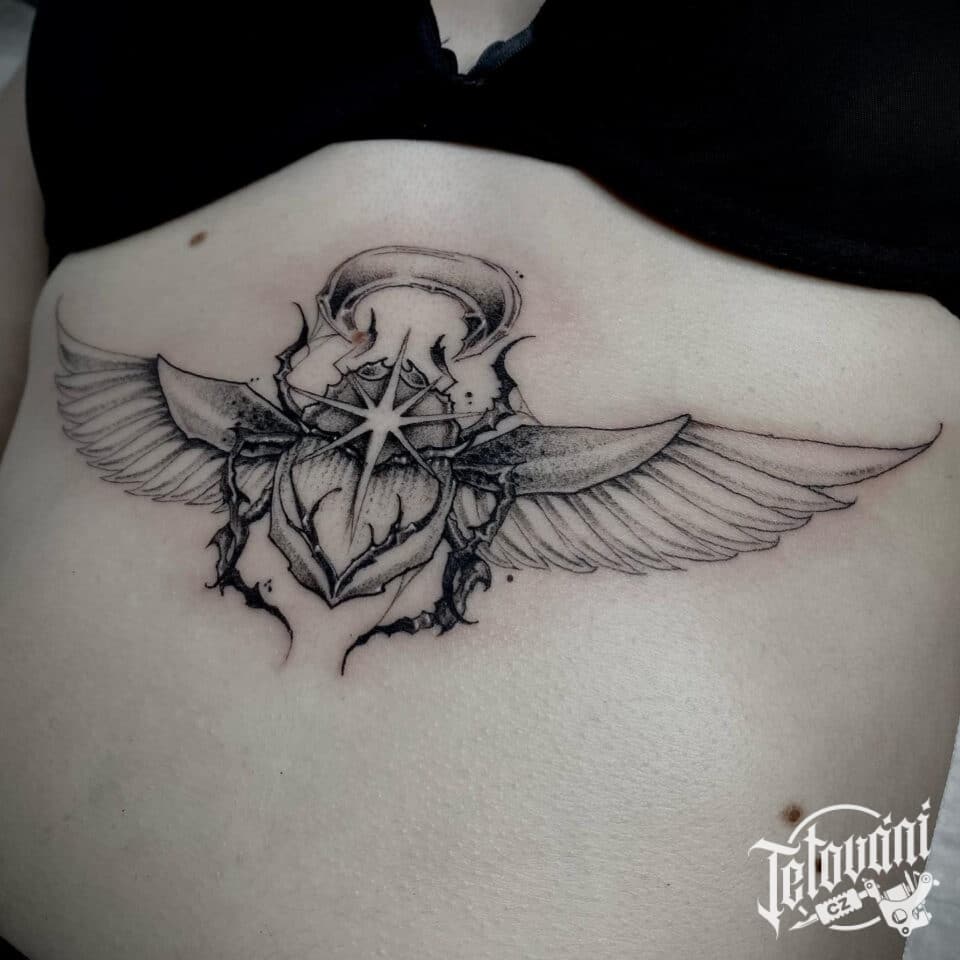 Tetování zvíře, scarabeus na břichu