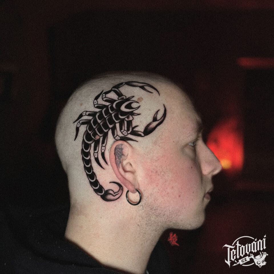 Tetování zvíře, škorpion, štír znamení zvěrokruhu na hlavě