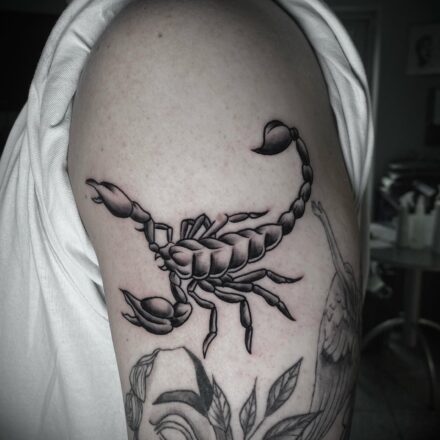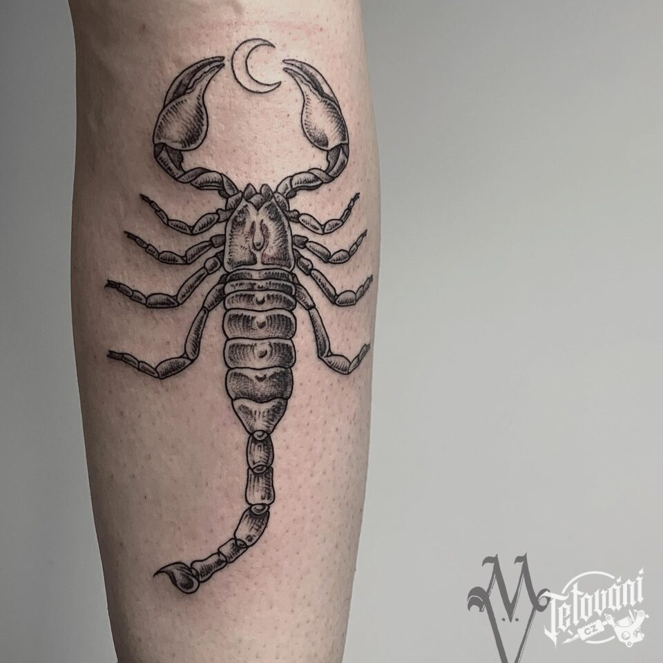 Tetování zvíře, škorpion, štír znamení zvěrokruhu na lýtku