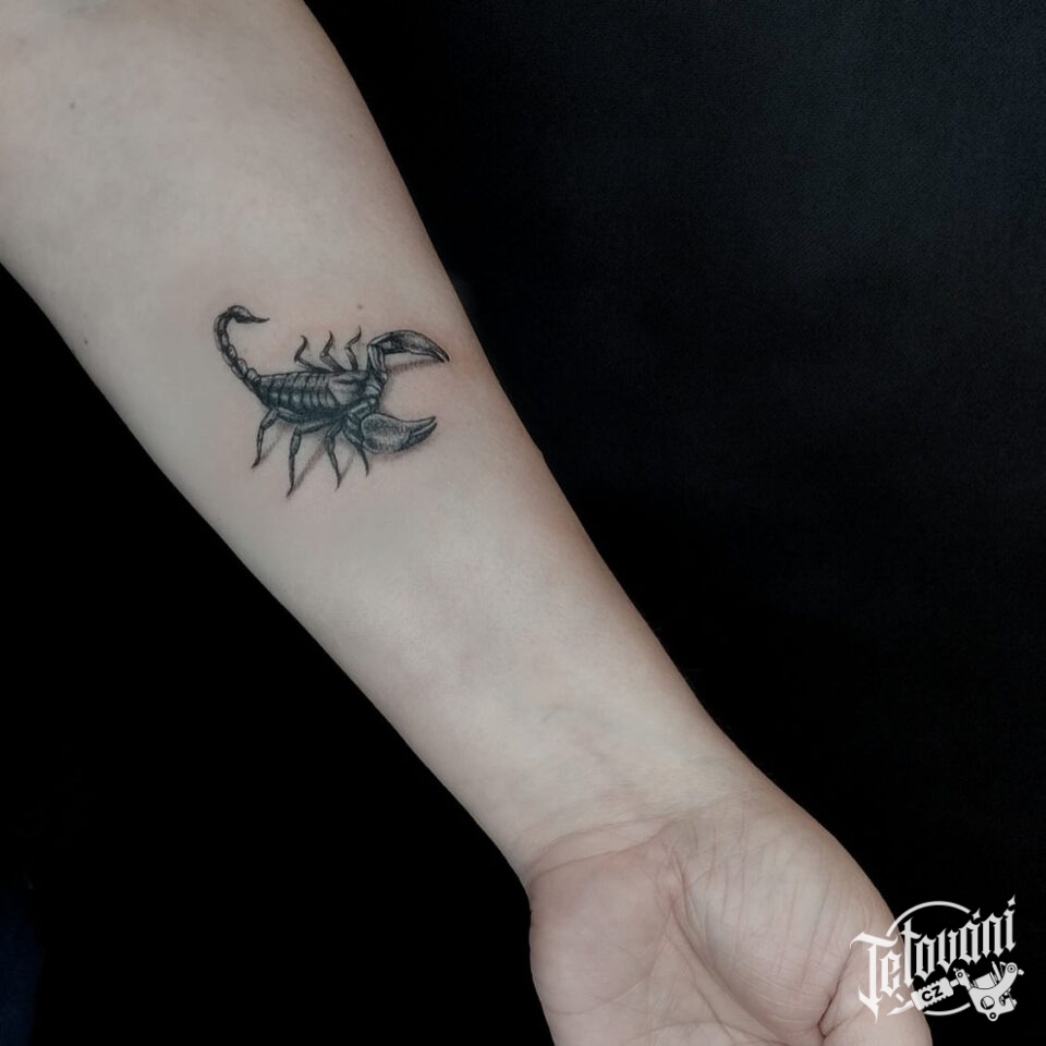 Tetování zvíře, škorpion, štír znamení zvěrokruhu na předloktí