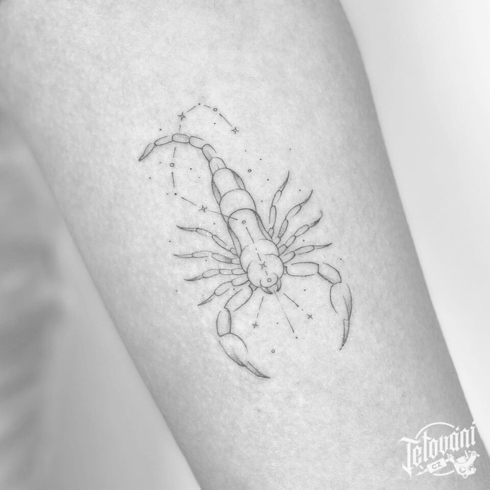 Tetování zvíře, škorpion, štír znamení zvěrokruhu na předloktí