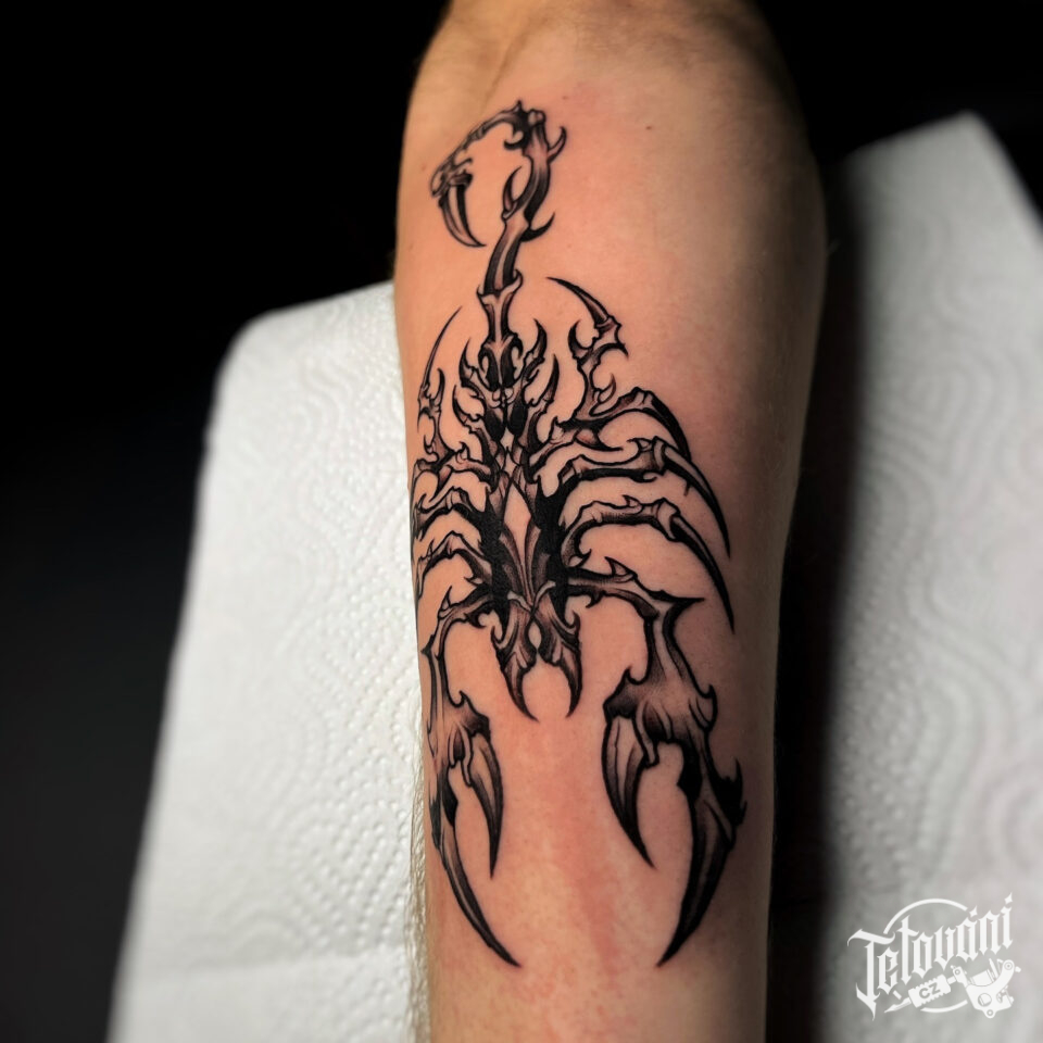 Tetování zvíře, škorpion, štír znamení zvěrokruhu na předloktí