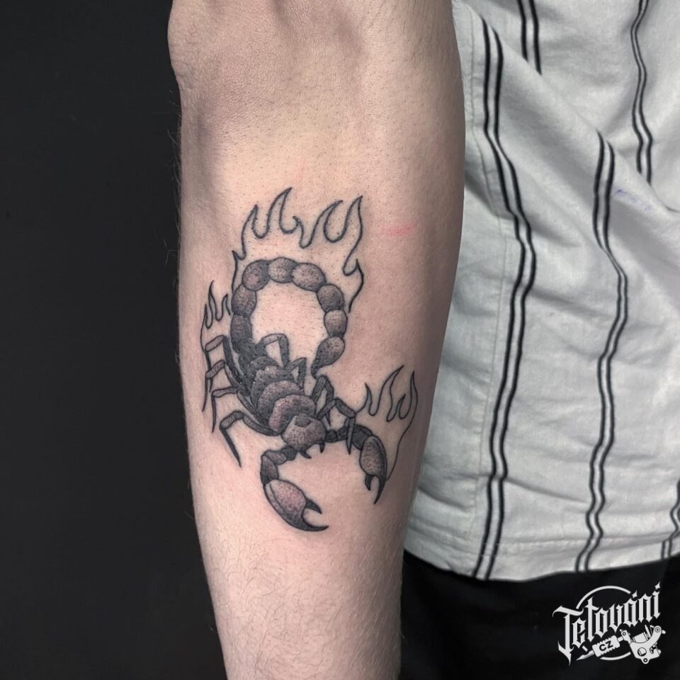Tetování zvíře, škorpion, štír znamení zvěrokruhu na předloktí