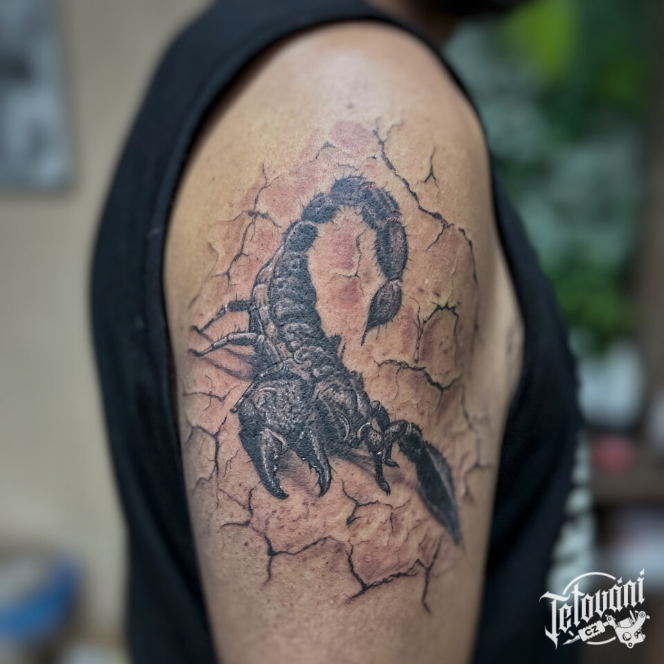 Tetování zvíře, škorpion, štír znamení zvěrokruhu na rameni