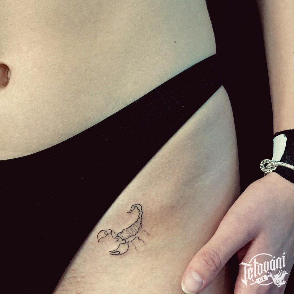 Tetování zvíře, škorpion, štír znamení zvěrokruhu v tříslech
