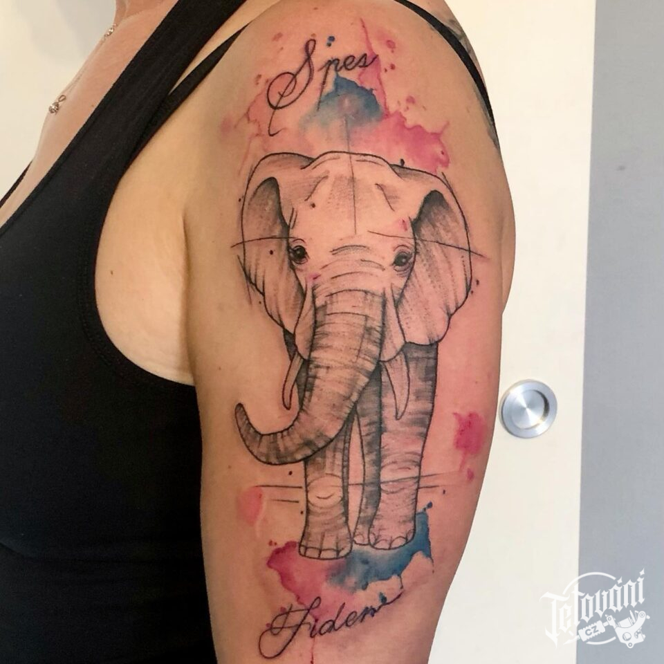Tetování zvíře slon na rameno