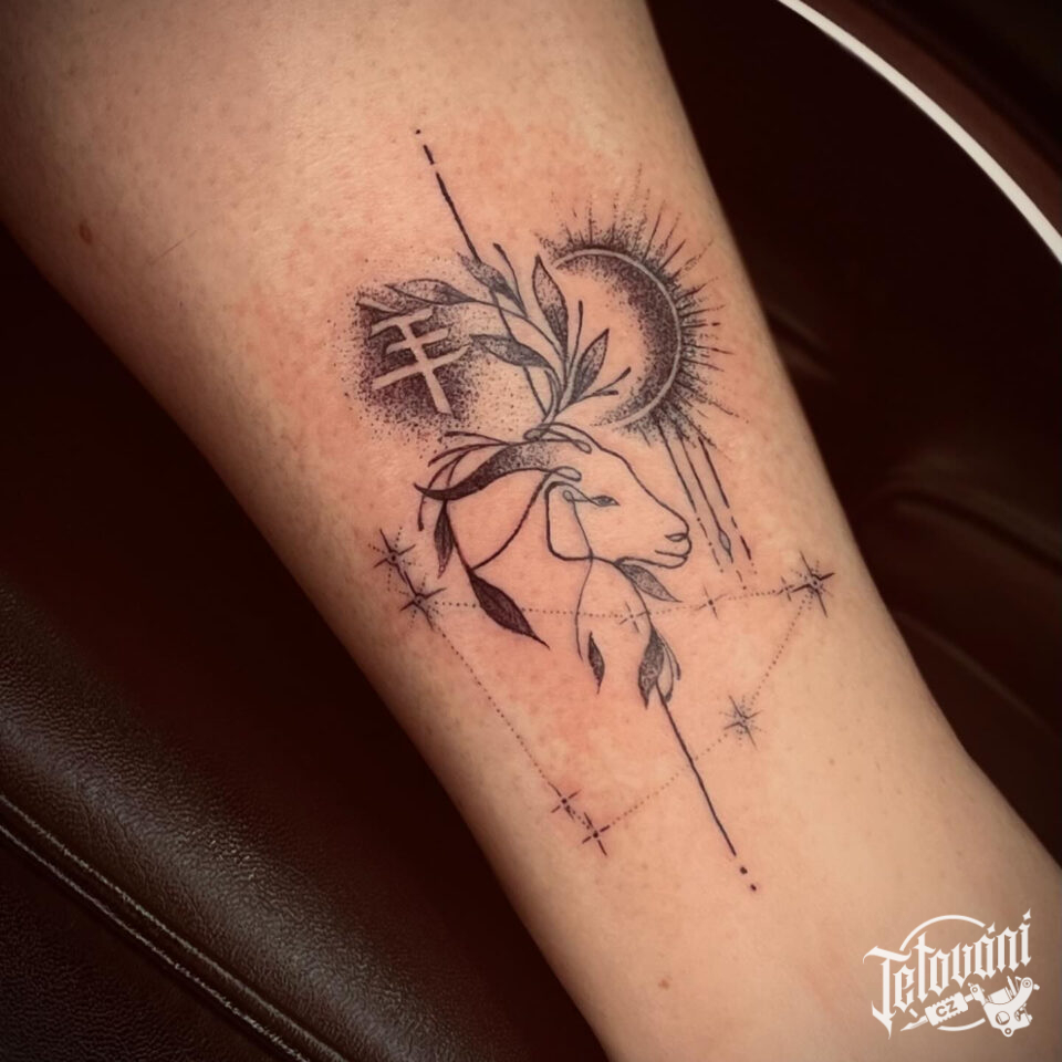 Tetování zvíře, souhvězdí kozoroh znamení zvěrokruhu na noze