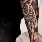 Tetování zvíře sova, had na ruku